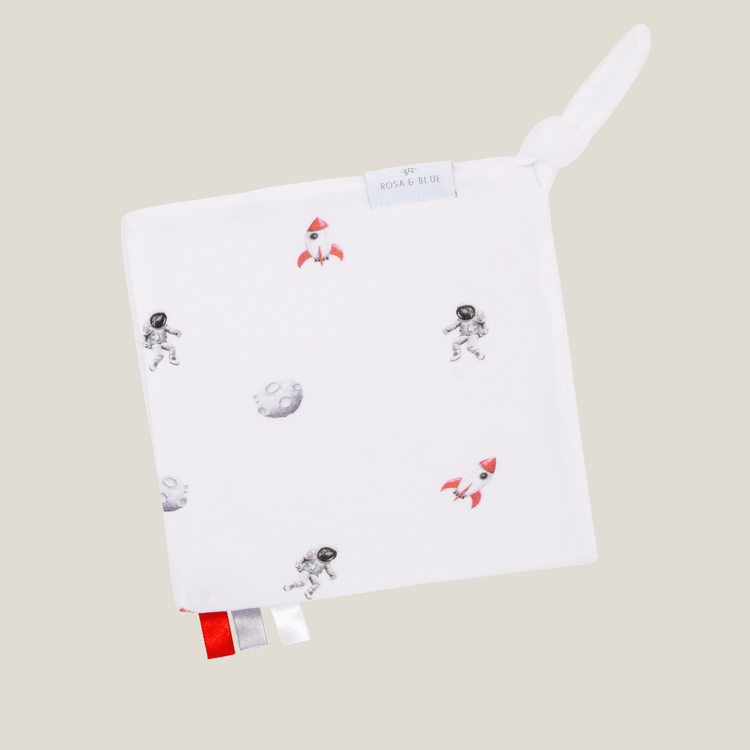 Our beautiful comforters have been carefully crafted from our signature buttery soft blend of bamboo and organic cotton. The perfect keepsake, designed to be gifted, treasured and enjoyed. We included sensory stimulating elements like the easy to grasp knotted corner, silky soft labels and gentle textures. Choose from four of our best-selling, exclusive prints and coordinate with matching sleepwear.