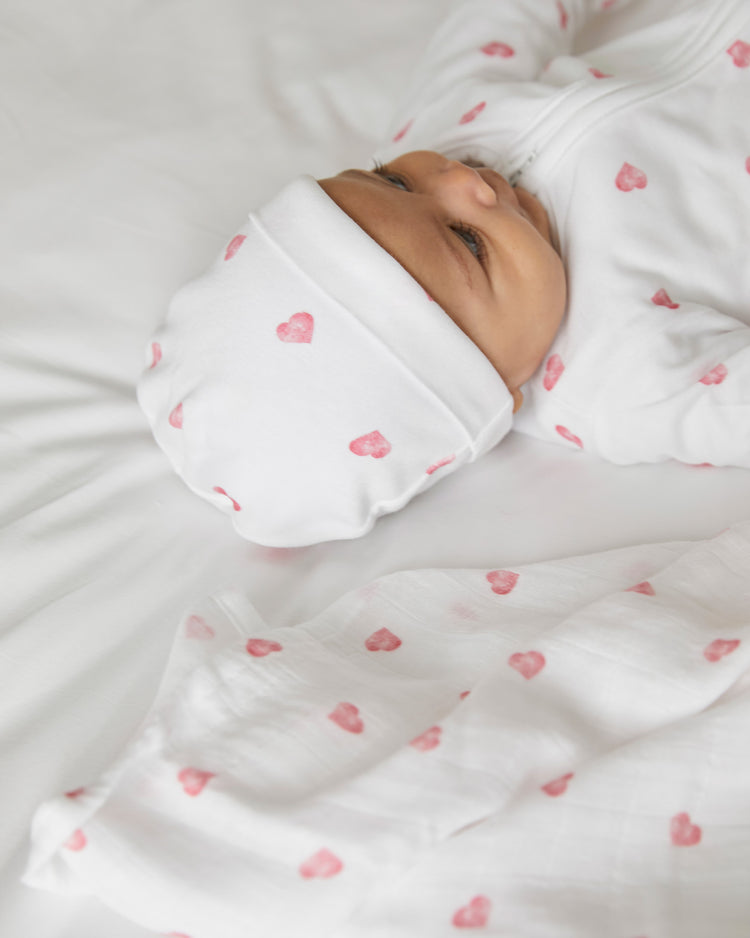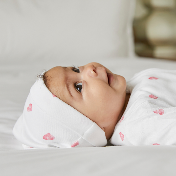 Soft, breathable, and gentle on delicate newborn skin, our bamboo and organic cotton hats are a must-have for your hospital bag or as a thoughtful new baby gift. The thermo-regulating fabric keeps your little one cosy in every season.