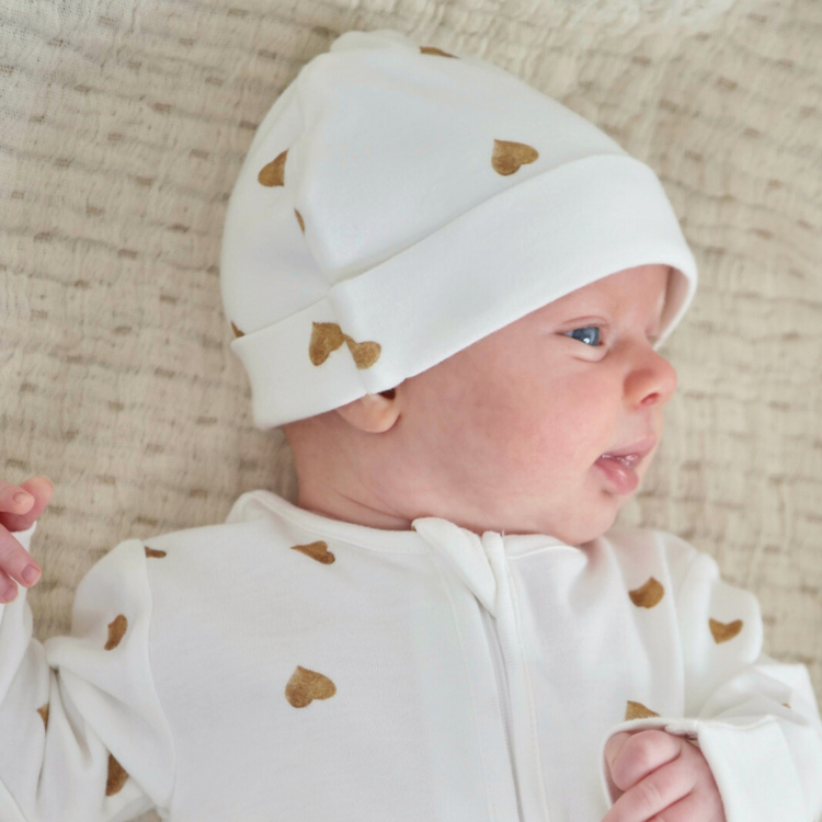 Soft, breathable, and gentle on delicate newborn skin, our bamboo and organic cotton hats are a must-have for your hospital bag or as a thoughtful new baby gift. The thermo-regulating fabric keeps your little one cosy in every season.