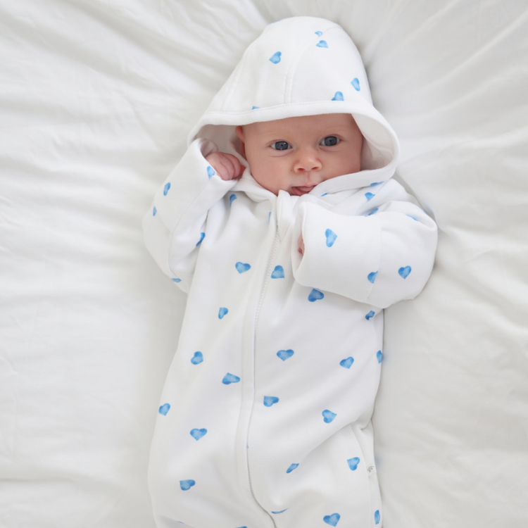 We’ve used our signature buttery soft bamboo & organic cotton mix, for premium comfort & simplicity on the go. Pair with the matching sleepsuit & hat for the cutest co-ord moment. Our cosy pramsuit boasts lots of wonderful features, from the padded hood to a clever concealed zip fastening & fold over scratch mitts too.