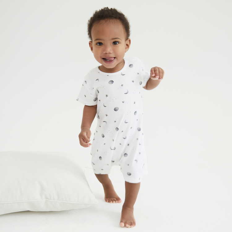 Keeping growing babies & active toddlers cool & comfy during the warmer months is easy with our summer rompers. Thermo-regulating, hypoallergenic, buttery soft & breathable too; bamboo’s clever moisture-wicking properties help to keep your little one comfortable whilst they sleep.