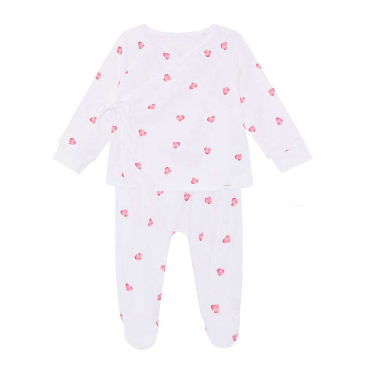 Our dreamy Wrap Over 2 piece set was created with special occasions in mind and carefully crafted from our premium blend of bamboo and organic cotton. A classic design that will make the perfect coming home or first outfit. Change time is quick and easy thanks pull-up style trousers and a clever hidden popper fastening to the top. All the beauty and style of the delicate bow detail, but without the hassle.