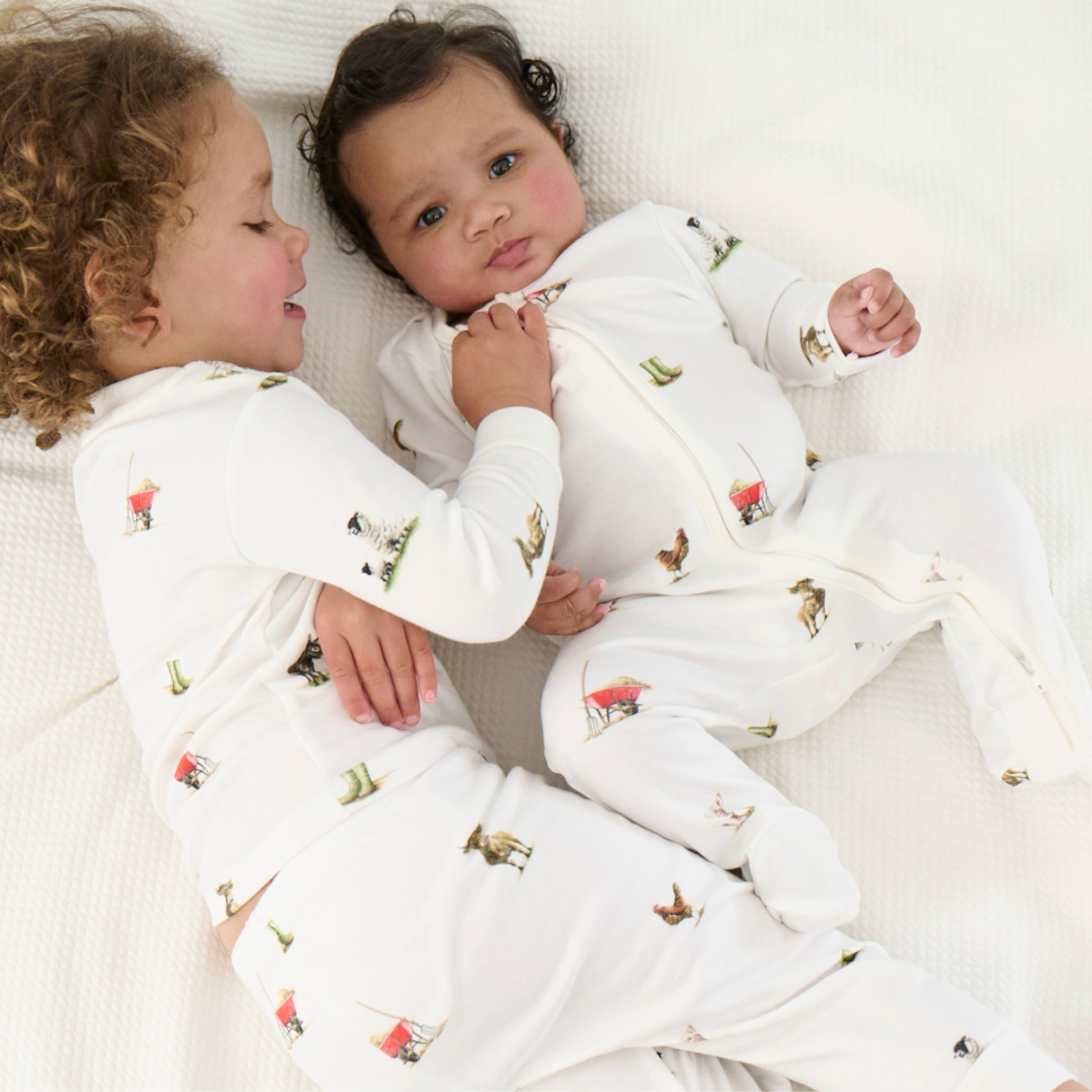 Our stunning prints have been hand-painted in our family home meaning they are completely exclusive to Rosa & Blue. Our classic Farm design is available on a bright white base