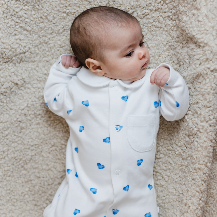 Sleepsuit with Collar - Blue Heart
