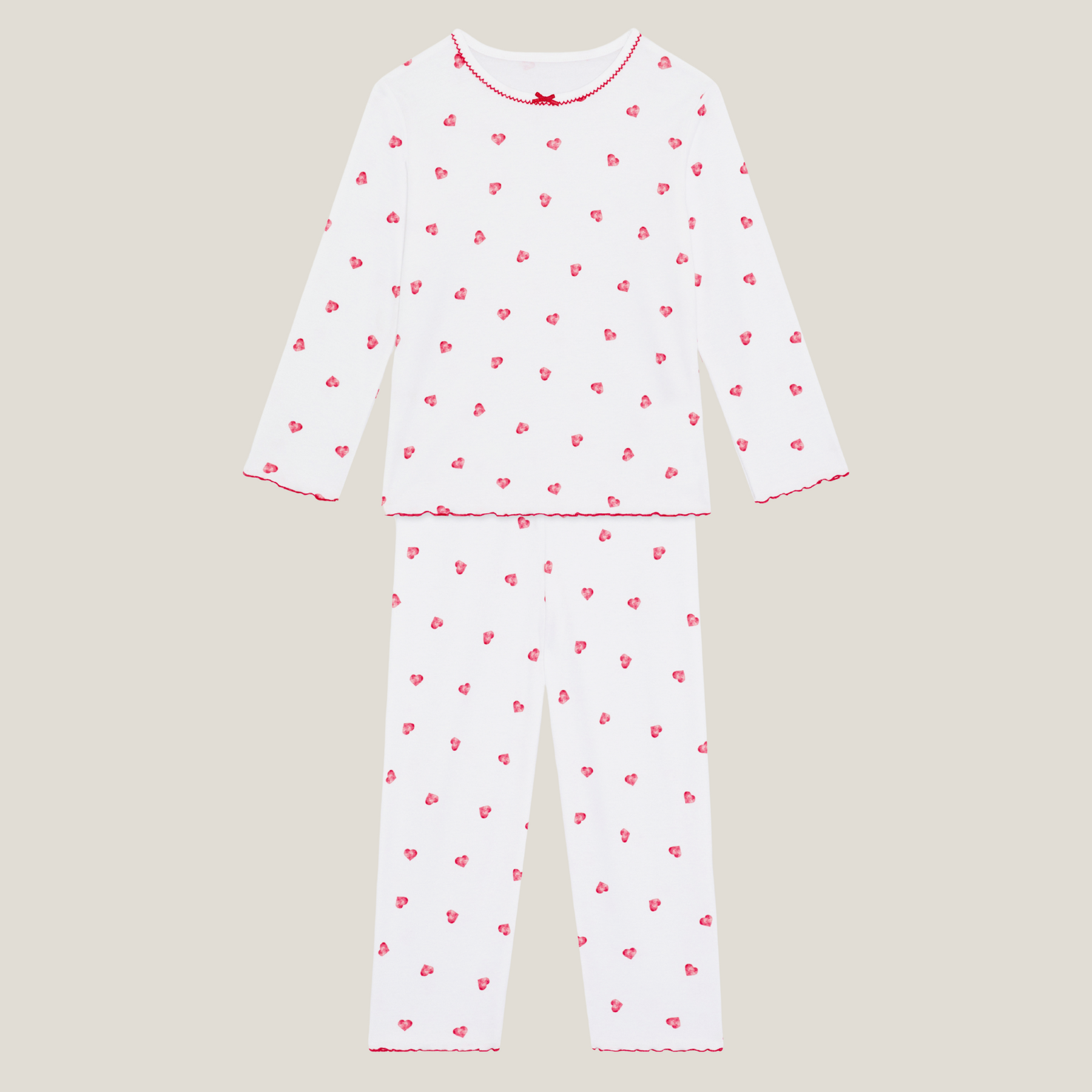 A beautiful new design for 2025 - introducing our delicate frill trimmed pyjamas, featuring a colour coordinated frilly hem, picot detail collar & sweet little bow. Our hand-painted heart collection was created to give something back. £2.50 from every item. . .